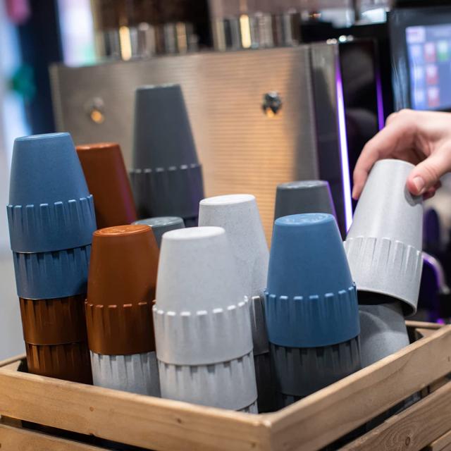 エコロジカルでユニークな名作を生み出しているドイツ製の生活雑貨ブランドから誕生した「Koziol Connect」シリーズ。バイオサーキュラー素材を使用した熱可塑性プラスチックと木材繊維を合わせた、100%リサイクル可能な原材料を使用しています。高い耐久性で傷が付きにくく、非常に丈夫で長持ちします。