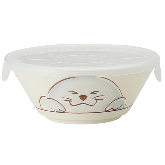 保存容器 蓋付き小鉢 箱入り アザラシ カワウソ ( レンジ対応 食洗機対応 陶器 動物 ふた付き 日本製 レンジOK 食洗機OK 保存 容器 食品保存容器 作り置き 食器 お皿 小鉢 あざらし かわうそ )