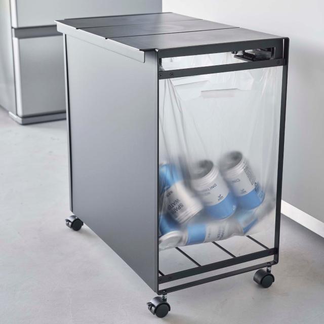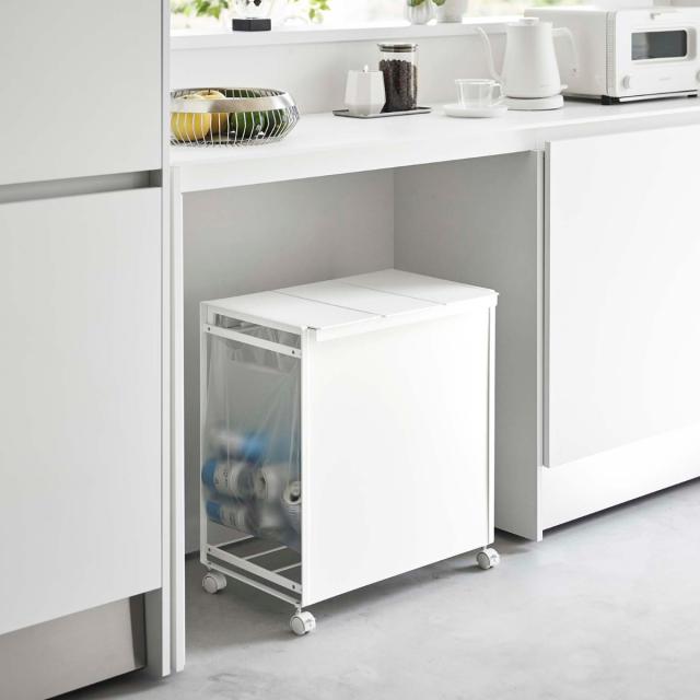 山崎実業 tower 蓋付き目隠し分別ダストワゴン 3分別 タワー ( 4903208059770 タワー 597 ごみ箱 ふた付き レジ袋ホルダー ダストワゴン 分別 ダストボックス 棚下 カウンター下 キャスター付き )