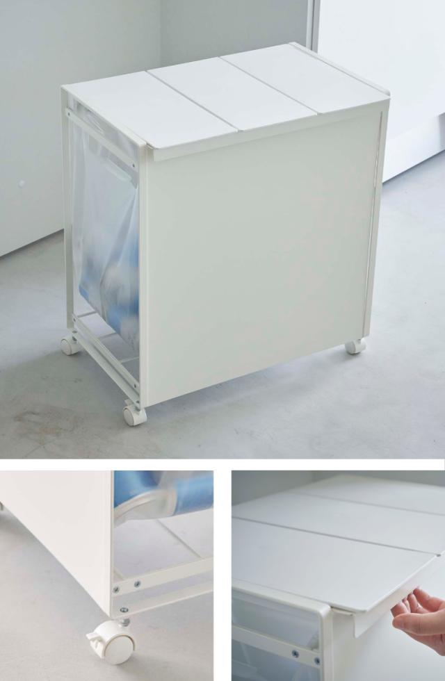 レジ袋を隠して分別できる3分別ふた付きワゴン