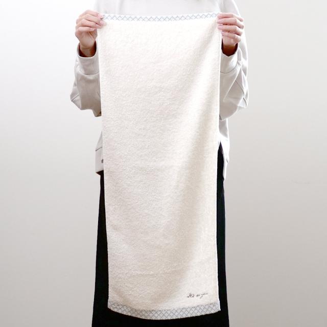 中厚でふっくらボリューム感がありふわふわの手触りです。ヘムに柄が入っているのがポイントです。