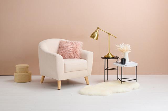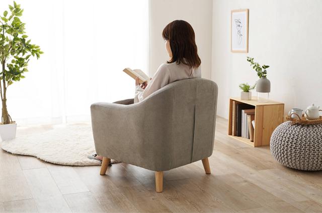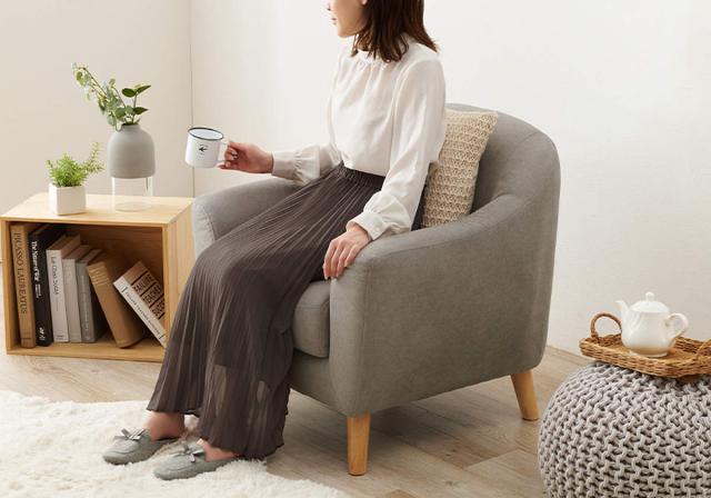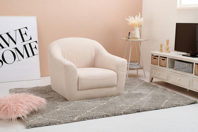 滑らかな曲線フォルムと、大人可愛いカラーがポイントになった一人用ソファです。丸みのあるシルエットでちょこんとしたデザインが可愛く、コンパクトサイズなので一人暮らしの方にもおすすめです。