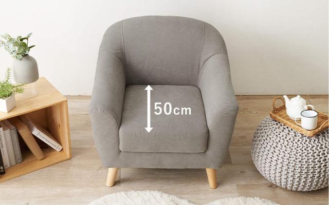 一人でゆったりと座れるちょうどいいサイズ感です。コンパクトなので、スペースの限られたワンルームや一人暮らし、子ども部屋にもおすすめです。