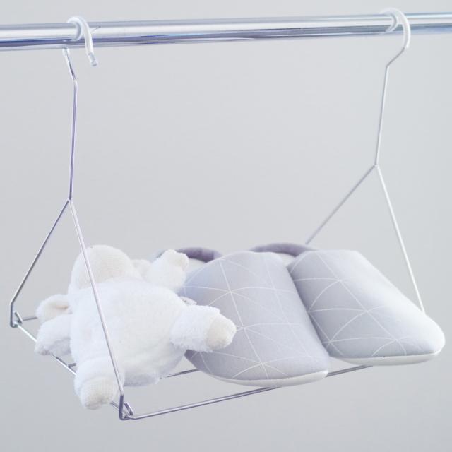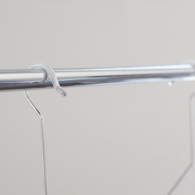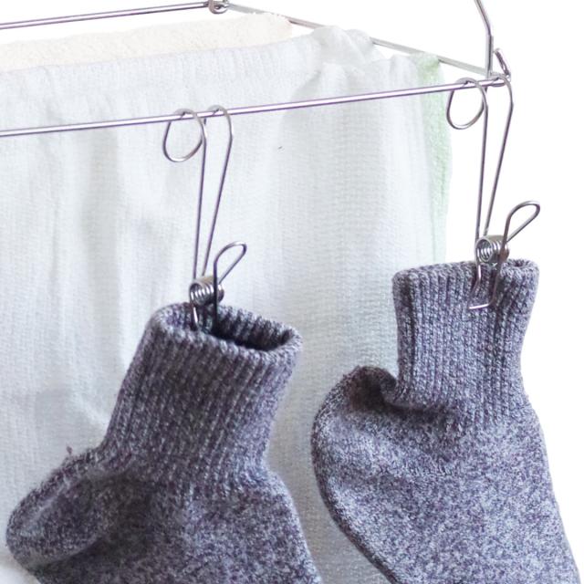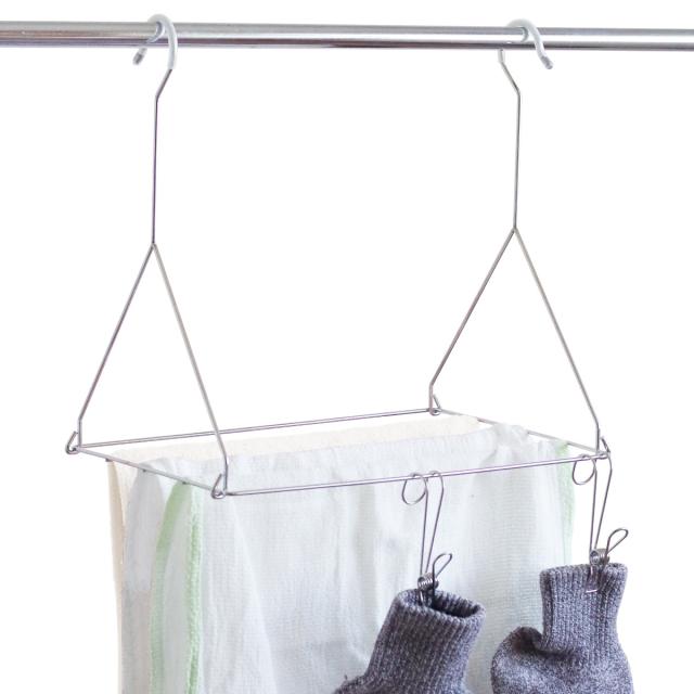 同じクレモアシリーズのステンレスピンチを引っ掛けて小物類を干すことも出来ます。さらに収納力がアップします。