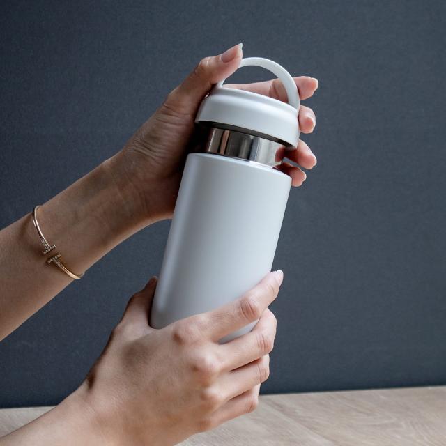 スリム形状で重さ200gと軽量な350mlの携帯マグボトルです。保温・保冷どちらもしっかり温度をキープできる真空断熱構造なので、夏は氷を入れて冷たい麦茶、冬はホットコーヒーなど、年間通じてお使いいただけます。