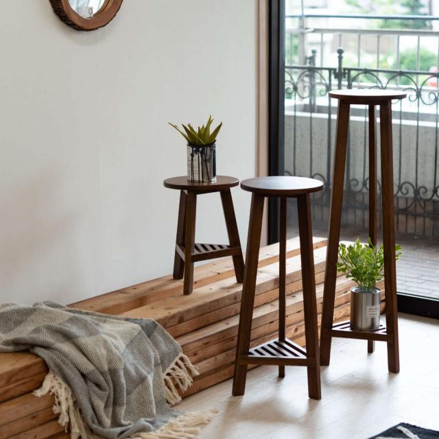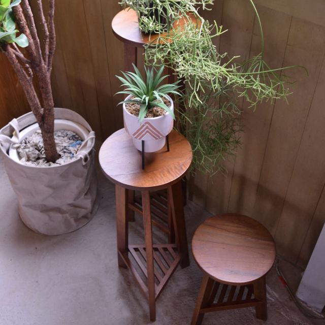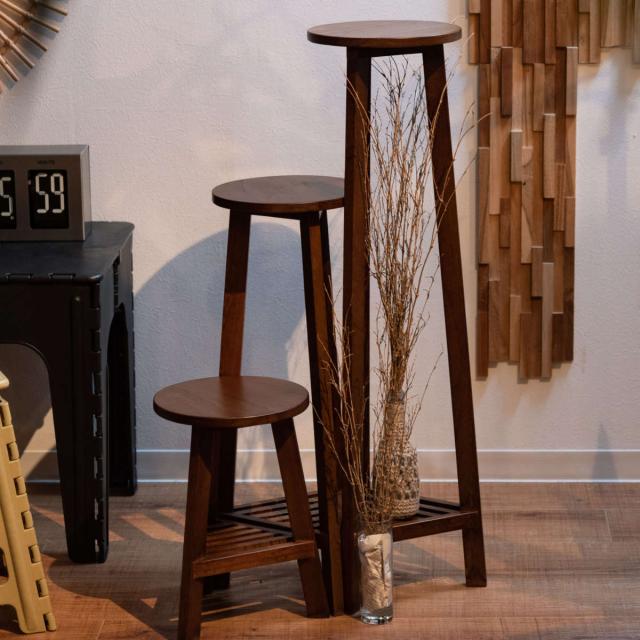 プランタースタンド プランターベース Sサイズ 木製 ( プランターラック プランター台 ラック フラワーラック 脚付き 丸 室内 フラワースタンド 花台 鉢置き 飾り台 スタンド 天然木 棚付き 植物 飾る おしゃれ ロータイプ )
