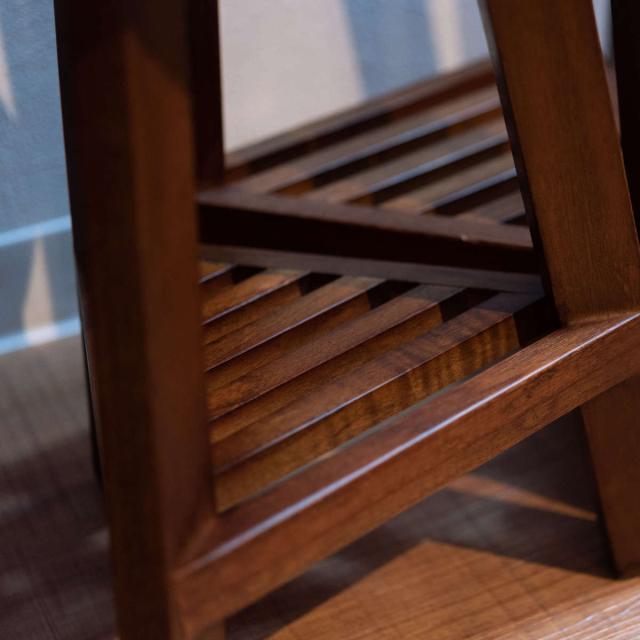 スリムなシルエットでちょっとしたスペースに最適です。天板には花瓶やプランター、お気に入りの雑貨を飾って雰囲気ある空間を作れます。下段にも小さな棚があり、ちょっとした小物を置くことができます。