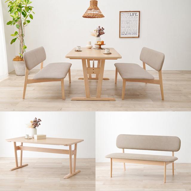 暮らしに馴染むナチュラルデザインのダイニングテーブルと、ゆったりくつろげる広々座面のベンチ2台の3点セットです。