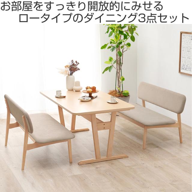 ダイニングテーブルセット 4人掛け ベンチ 3点セット ( ダイニング セット テーブル 高さ 65cm ロータイプ ダイニングベンチ 2脚 木製 食卓 長方形 木目調 天然木 北欧風 ナチュラル おしゃれ 省スペース )