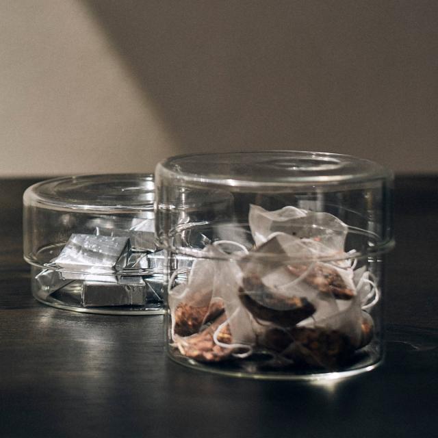 こだわりのティーバッグやおやつを入れると、身近に愉しめて日々のカフェタイムがより贅沢な時間になります。