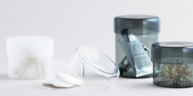 ガラスの透明感は洗練と癒しをもたらします。キャニスターの口径は10cmで広いため、バスソルトなどの取り出しもスムーズです。ガラス製で中身が見えるので補充のタイミングも簡単に把握できます。