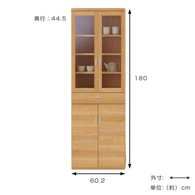 食器棚 幅60.2cm 日本製 キッチン収納 北欧風 ( キッチン 収納 リビング収納 食器 棚 完成品 台所収納 国産 カップボード リビング 引き出し 可動棚 シンプル )