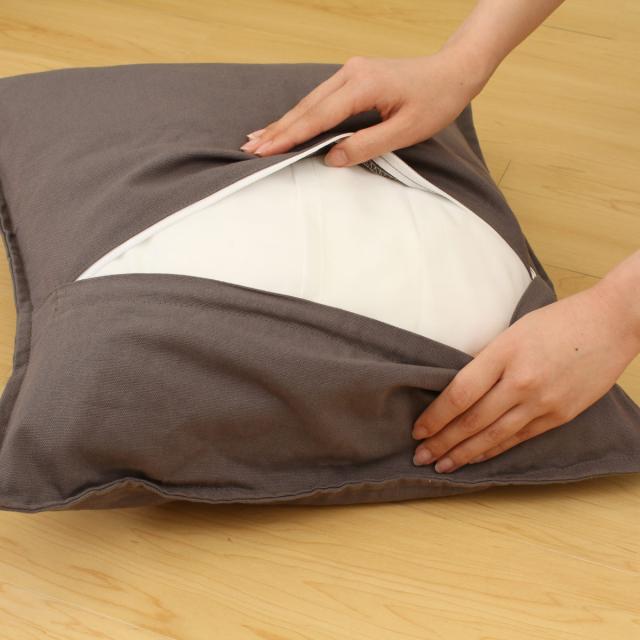 ●クッションの中綿にインナーカバーを取り付けることで、ペットがクッションに粗相した時に中綿まで濡れるのを防ぎます。