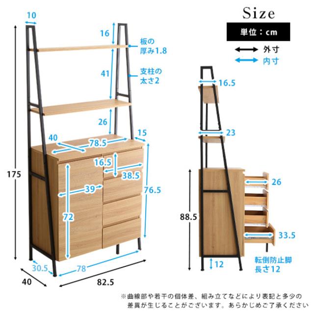 | サイズ | 約 幅82.5×奥行40×高さ175(cm) |