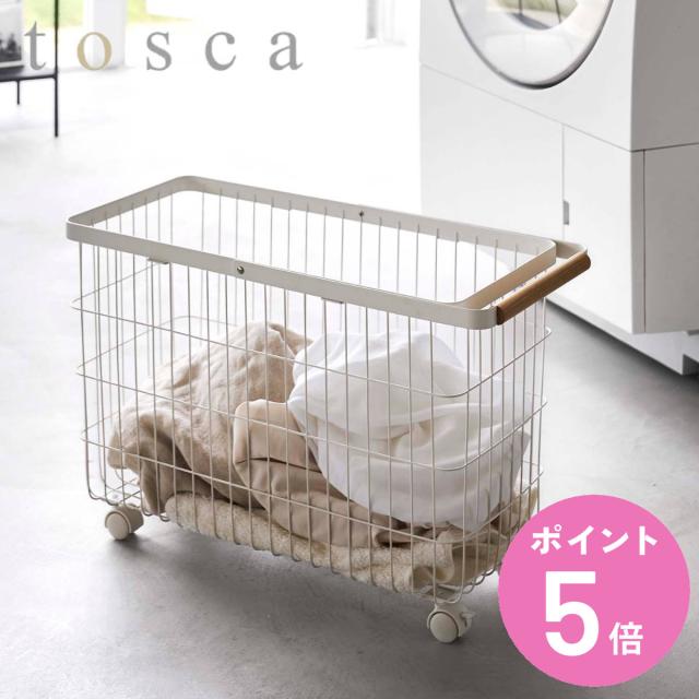 tosca ランドリーバスケット トスカ キャスター付き ワイド&ロー ( 山崎実業 トスカシリーズ 洗濯かご ランドリーワゴン 洗濯カゴ 洗濯物入れ 脱衣かご 長方形 角型 スチール ワイヤーバスケット )