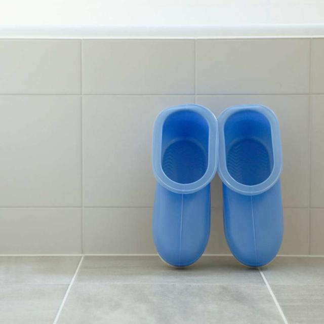 濡れたお風呂場のお掃除に便利です。水はねによってブーツの中に水が入らないように、上の部分は「かえし」が付いたようなデザインになっています。