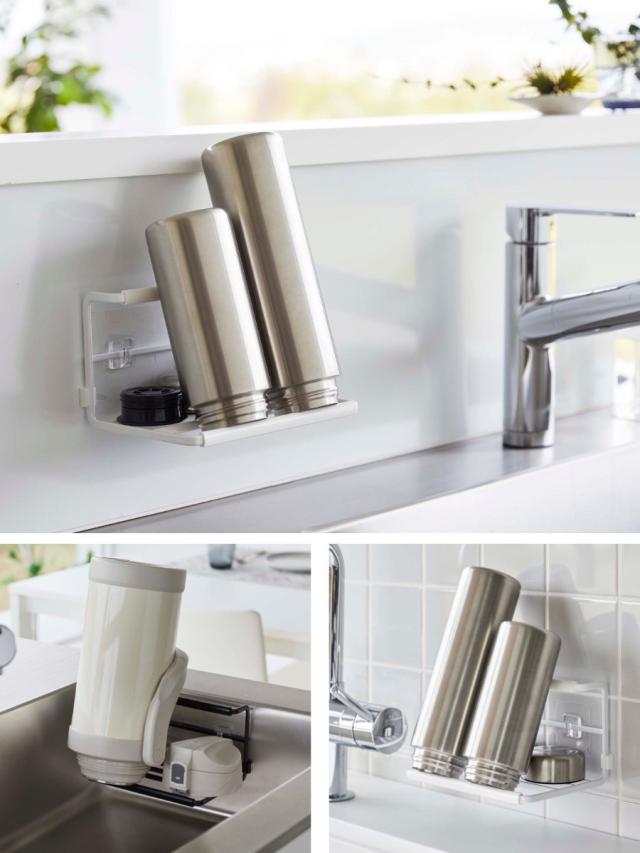 tower 山崎実業 フィルムフックワイドジャグボトルホルダー タワー S ( 山崎実業 タワーシリーズ ボトルスタンド ボトル 水筒 水切り スタンド ボトルラック 水筒用水切り ペットボトル tower 山崎実業 キッチン)