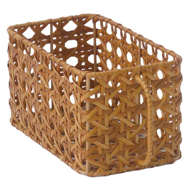 ラタンの皮の風合いをポリプロピレンとポリエチレンを使って表現した、天然素材のような手編みバスケットです。八つ目状に編み込まれたデザインは、置いておくだけでもかわいいので魅せる収納インテリアとしても楽しめます。