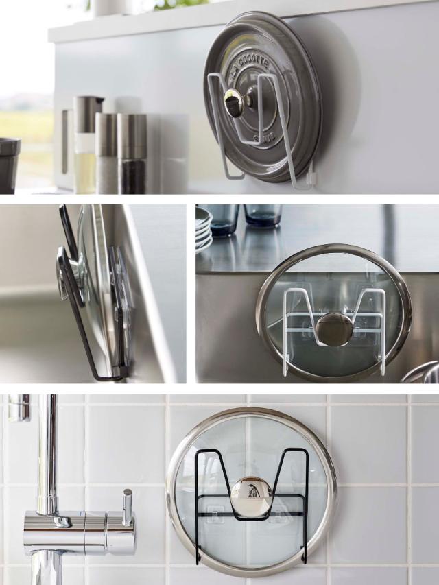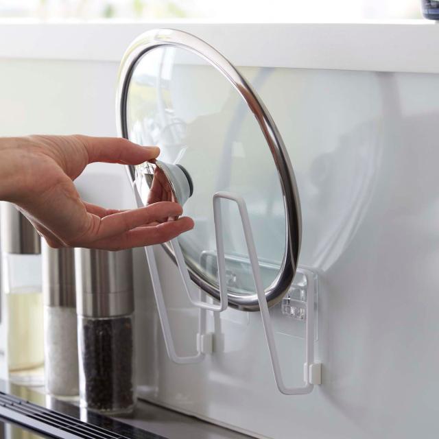 フィルムフックでお好みの位置に取り付けできる鍋蓋ホルダー