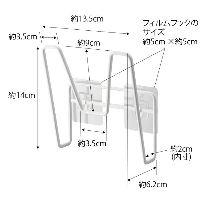 | サイズ | 約 幅13.5×奥行6.2×高さ14(cm) フィルムフック接着面:約幅5×高さ5(cm)(1つあたり) |