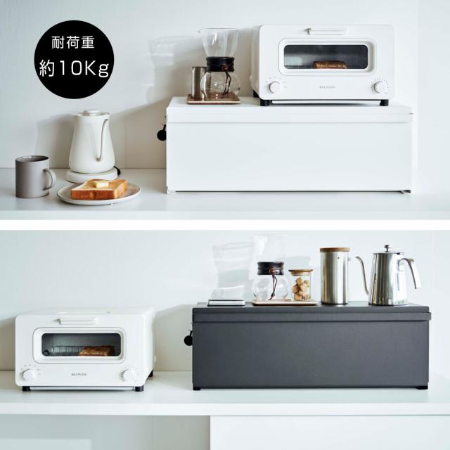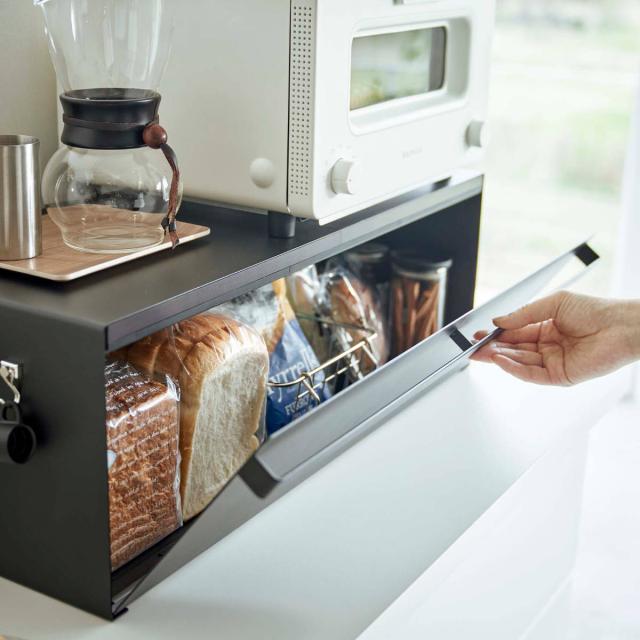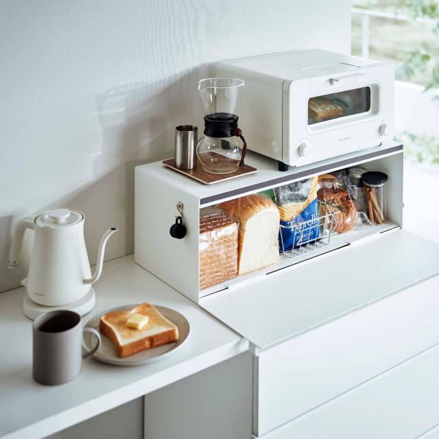 パンやジャムなどの朝食のセット以外にも、調味料やお菓子のストックなどもすっきりまとめて収納できる32Lの大容量ブレッドケースです。ワイドでコンパクトなケースは、キッチンカウンターで雑然としがちなお菓子や調味料を隠しながら美しく収納できます。