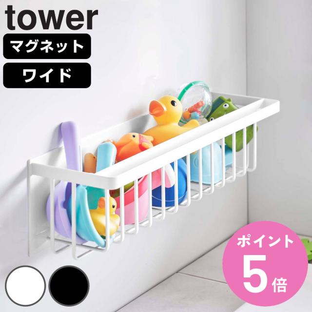 山崎実業 tower マグネットバスルームバスケット タワー ワイド ( 4903208037693 タワーシリーズ 磁石 マグネット お風呂収納 バス お風呂 風呂 バスケット 浮かせる収納 浴室 収納 ホワイト ブラック )