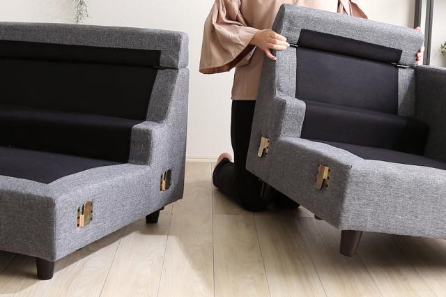 本体は工具不要で組立が容易な連結金具で接合する仕様です。使っている間にソファ同士がズレる心配もありません。