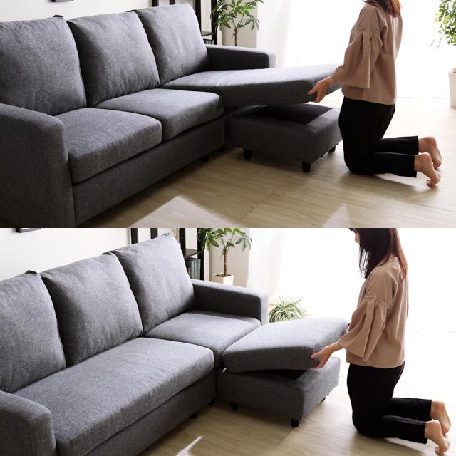 ソファに座りながら足をゆったり伸ばすことのできるカウチソファです。カウチ部分は左右どちらにも組み換え可能なので、お部屋の間取りに合わせたレイアウトができます。パーツを分ければスツールやオットマンとして使えるのも嬉しいポイントです。
