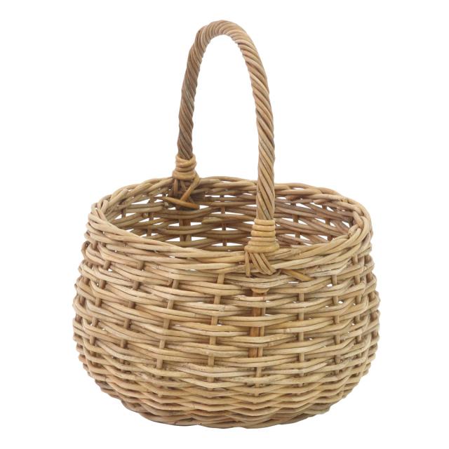 《 LH12683 ラタンバスケット 藤かご 藤カゴ リビング キッチン 収納カゴ 収納用品 食品 ストック ストッカー 台所 インテリア雑貨 オシャレ おすすめ オススメ 人気 使いやすい シンプル ナチュラル アジアン 入れ 円形 雑貨 お菓子 卓上 サニタリー フルーツバスケット レトロ ヴィンテージ風 アンティーク風 フルーツ 高さ15cm ワンハンドル 》