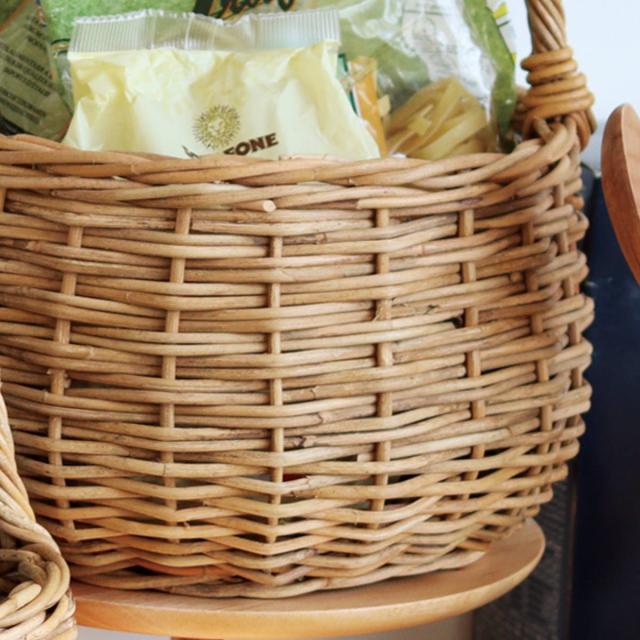 ちょっとした収納や魅せる収納に便利で丈夫なラタン製のバスケットは経年変化も楽しみながら長く愛用いただけます。素材を活かしたシンプルなデザインで様々なシーンで活躍します。