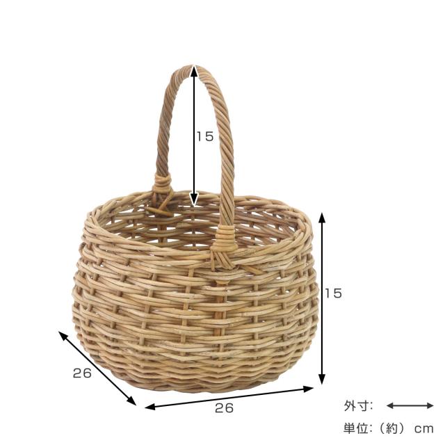 バスケット アラログ グリーンバスケット ラウンド ラタン ( かご カゴ 収納 直径26cm 皮付き 天然素材 アジアン雑貨 ハンドメイド 収納かご 丸 藤 小物収納 持ち手付き 果物 手編み 小物入れ おしゃれ インテリア 見せる収納 )