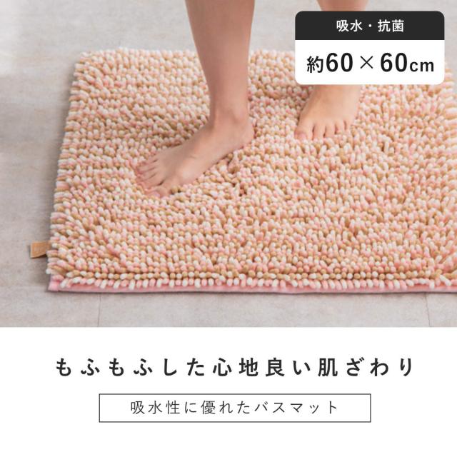 バスマット マイクロファイバー 60×60cm もふバスマット ( お風呂マット バス マット 吸水 抗菌 防臭 お風呂 浴室 正方形 60×60 足ふきマット 滑りどめ )