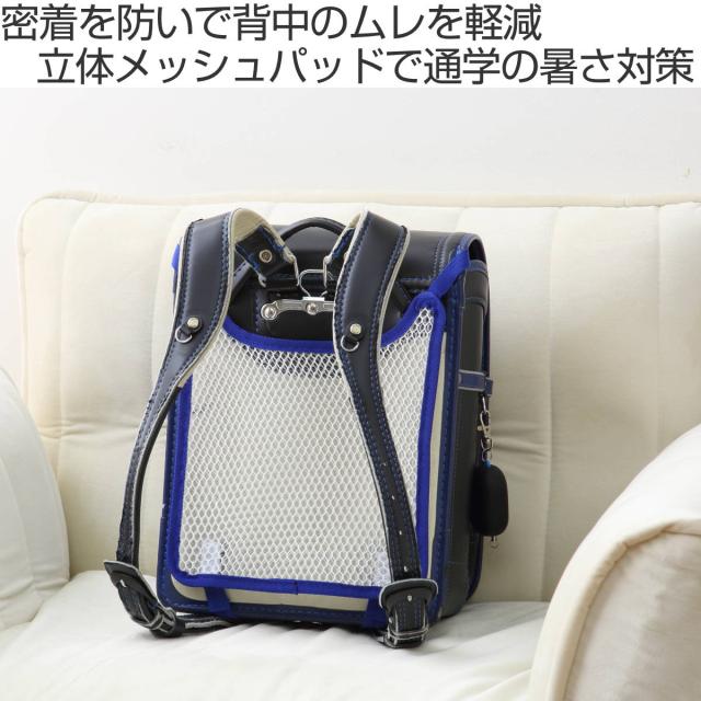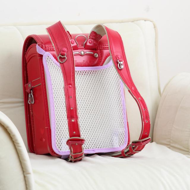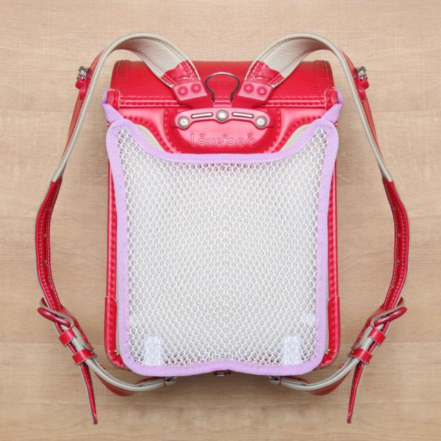 通気性の良い立体メッシュ(厚さ9mm)が、ランドセルと背中の間に隙間を作り、暑い日の背中の蒸れを軽減します。