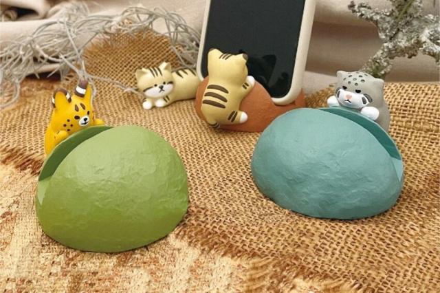 ひしっと岩にしがみついて、じ〜っとスマホを見つめ、今にもいたずらを始めそうな猫ちゃんのスマホスタンドです。マヌルネコ、サーバル、スナネコからお好きな子をお選びいただけます。家族やペアで揃えて使用しても可愛いのでおすすめです。また、置いてあるだけでも、置物として癒しを届けてくれます。