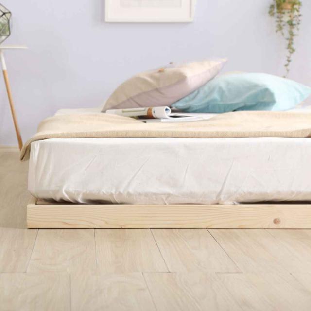 風合いの良い北欧産パイン材を使用したベッドフレームです。床面は通気性と頑丈設計のLVLすのこで、汗や湿気を溜め込まず、年中快適におやすみいただけます。天然木の温もりが感じられる柔らかなパイン材を使用しているので、美しい木目と経年による色の変化を楽しめます。