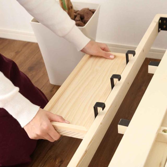| 材質 | ベッド・フレーム:天然木(パイン材) すのこ:積層合板(LVL) 宮棚:天然木(パイン材)、スチール |