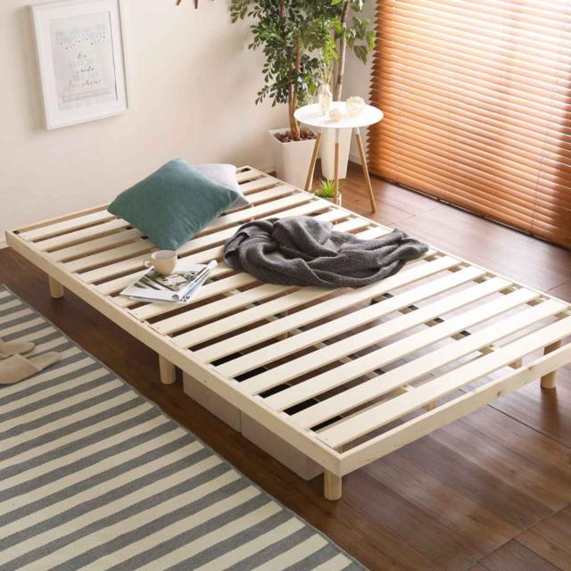 すのこベッド セミダブル Lilitta 簡易宮棚セット 3段階調整脚付き 天然木 ( ベッド ベット ローベッド ロータイプ 北欧パイン材 木製 高さ調節 ナチュラル 北欧風 モダン シンプル 通気性 湿気対策 )