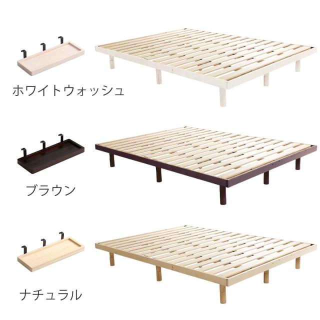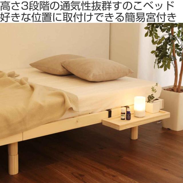 すのこベッド ダブル Lilitta 簡易宮棚セット 3段階調整脚付き 天然木 ( ベッド ベット ローベッド ロータイプ 北欧パイン材 木製 高さ調節 ナチュラル 北欧風 モダン シンプル 通気性 湿気対策 )
