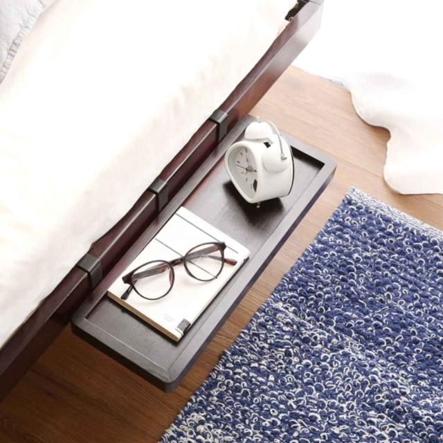 ベッドの横にちょっと物を置きたい時に便利な「リリッタ」専用の簡易宮棚です。好みの場所に取り付けが可能です。眠る時や目覚める時に、便利な場所からサッと物を取ることができます。ベッド横で座ったときのサイドトレーとしても便利に使えます。