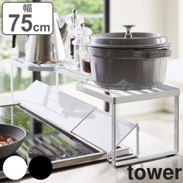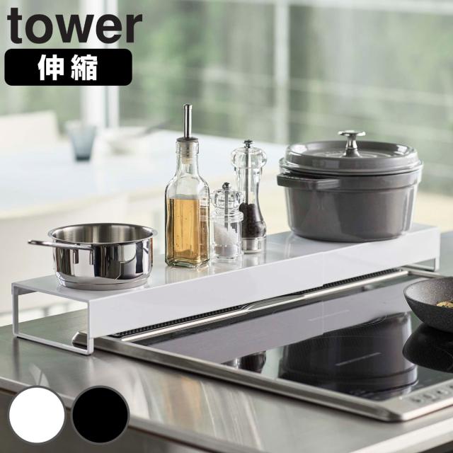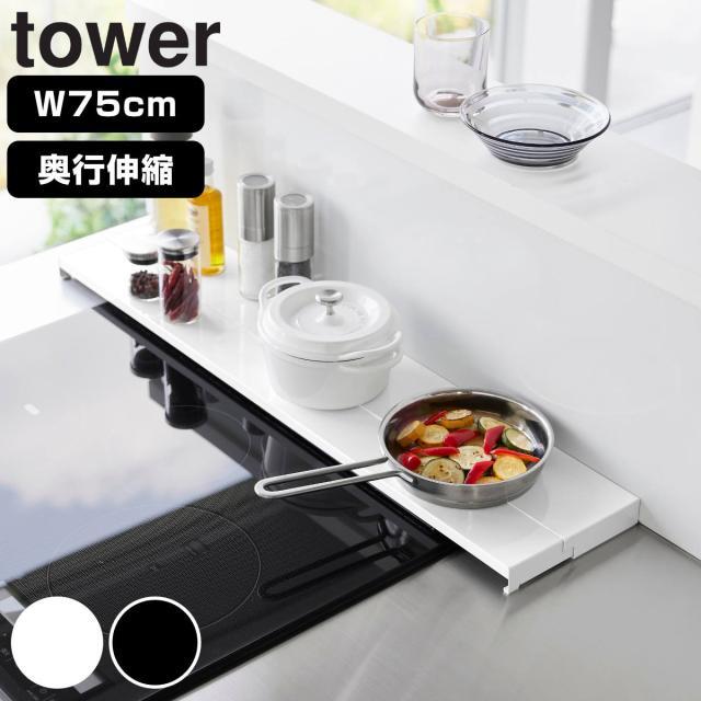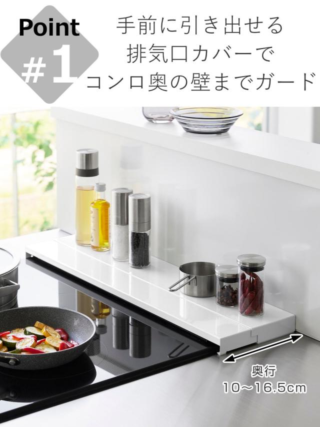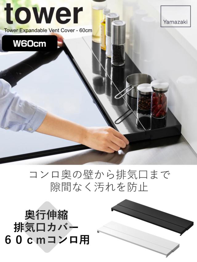 山崎実業 tower 奥行伸縮排気口カバー タワー 60cmコンロ用 ( 4903208045629 タワーシリーズ 排気口カバー 伸縮式 幅60cm コンロ用 フラット 排気口用カバー 排気口ガード コンロ奥 伸縮 ホワイト ブラック )