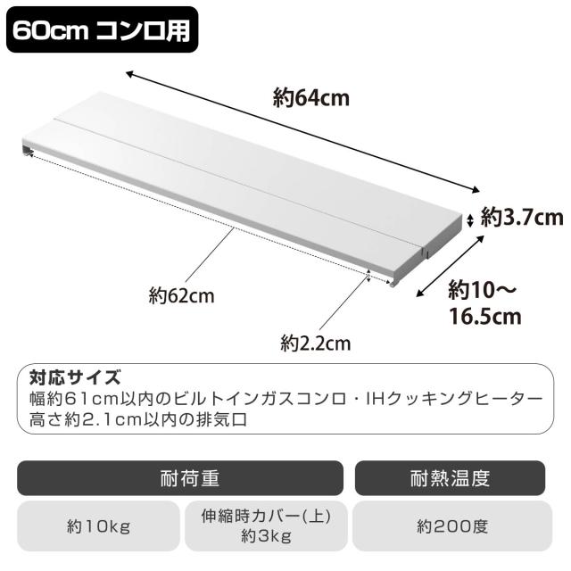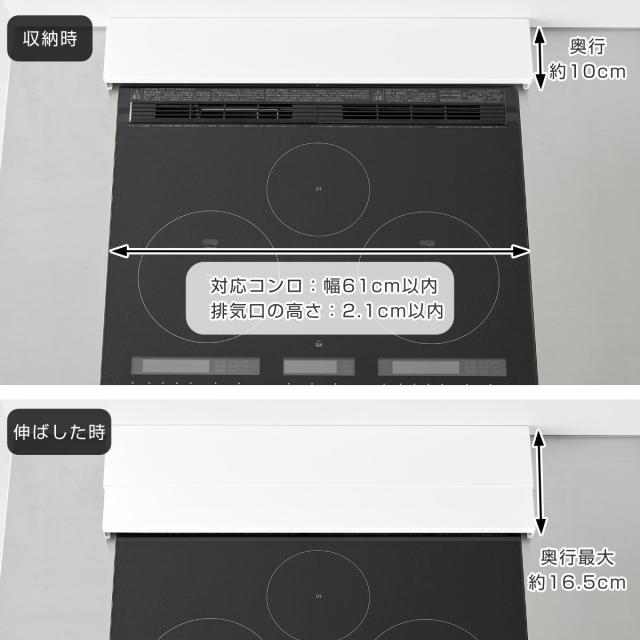 | 対応サイズ | 対応サイズ:幅約61cm以内のビルトインガスコンロ・IHクッキングヒーター、高さ約2.1cm以内の排気口 |