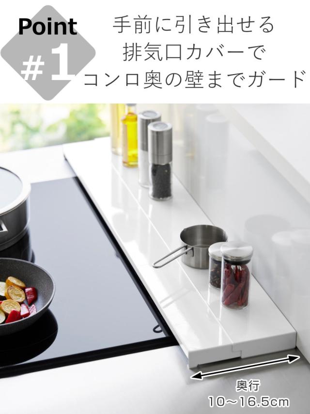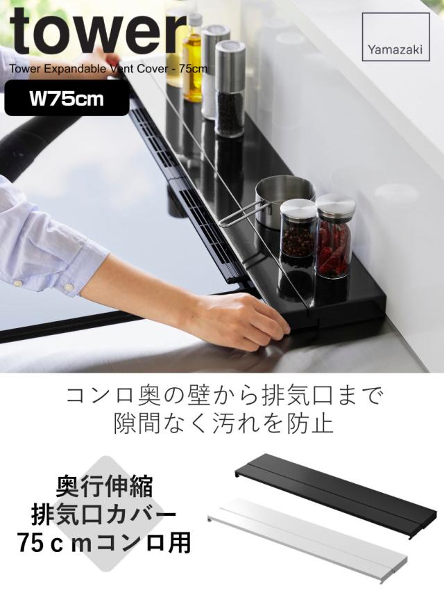 tower 山崎実業 奥行伸縮排気口カバー タワー 75cmコンロ用 ( タワーシリーズ 排気口カバー 伸縮式 幅75cm コンロ用 フラット 排気口用カバー 排気口ガード コンロ奥 tower 山崎実業 キッチン)