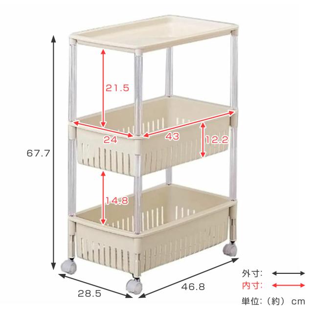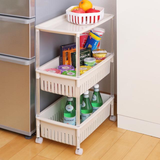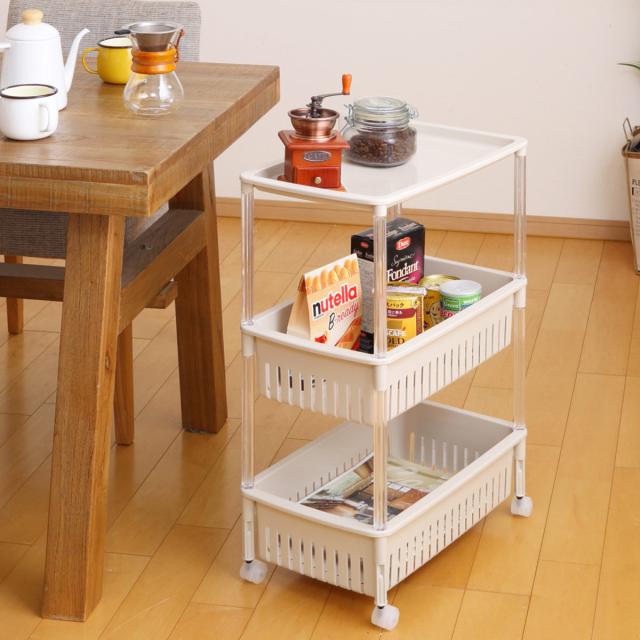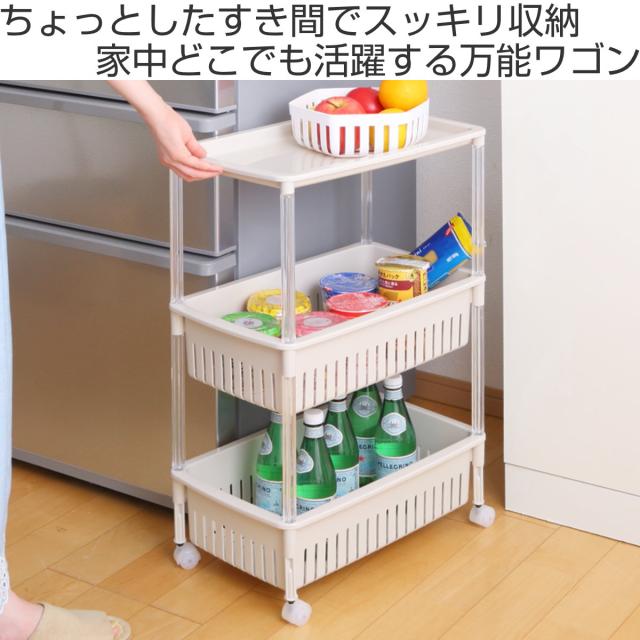 キッチンワゴン ルーチェワゴン 3段 幅28.5cm 奥行46.8cm 高さ67.7cm ( キャスター付き 天板付き キッチンストッカー 日本製 マルチワゴン キッチンラック ワゴン ラック 収納 ワゴン収納 バスケットワゴン キッチン 洗面所 三段 )