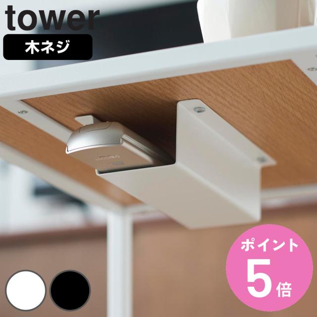 tower 山崎実業 テーブル下ハンディモップ&リモコンホルダー タワー ( タワーシリーズ ハンディモップホルダー リモコンホルダー 木ネジ テーブル下 )