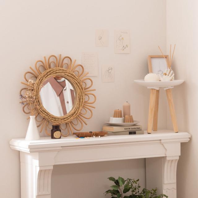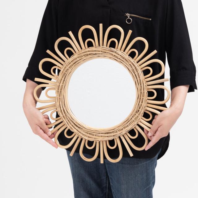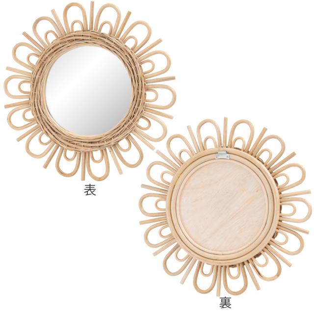ウォールミラー ラタン フラワー型 47×47cm ( ミラー 壁掛け 鏡 かがみ 丸ミラー 花型 花 ラタンミラー インテリアミラー 壁 リビング 玄関 壁掛けミラー 北欧 ナチュラル ラタン製 インテリア おしゃれ )