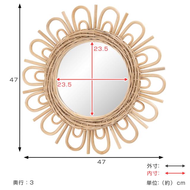 | サイズ | 約 幅47×奥行3×高さ47(cm) ミラー:直径約 23.5cm |
