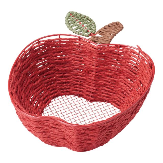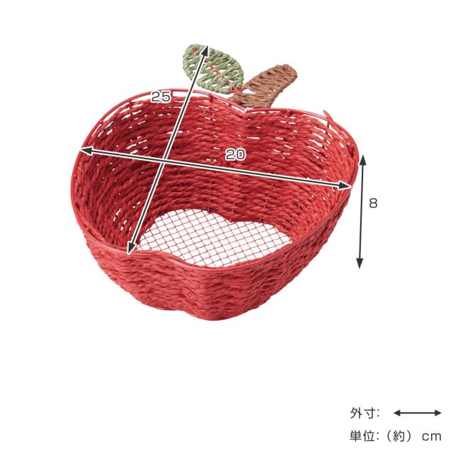 バスケット フルーツバスケット リンゴ型 ( かご ペーパーバスケット カゴ 幅20×奥行25×高さ8cm 収納バスケット 収納 小物収納 小物ケース りんご ギフト 紙製 インテリア フルーツ かわいい おしゃれ 赤 小物入れ ディスプレイ )