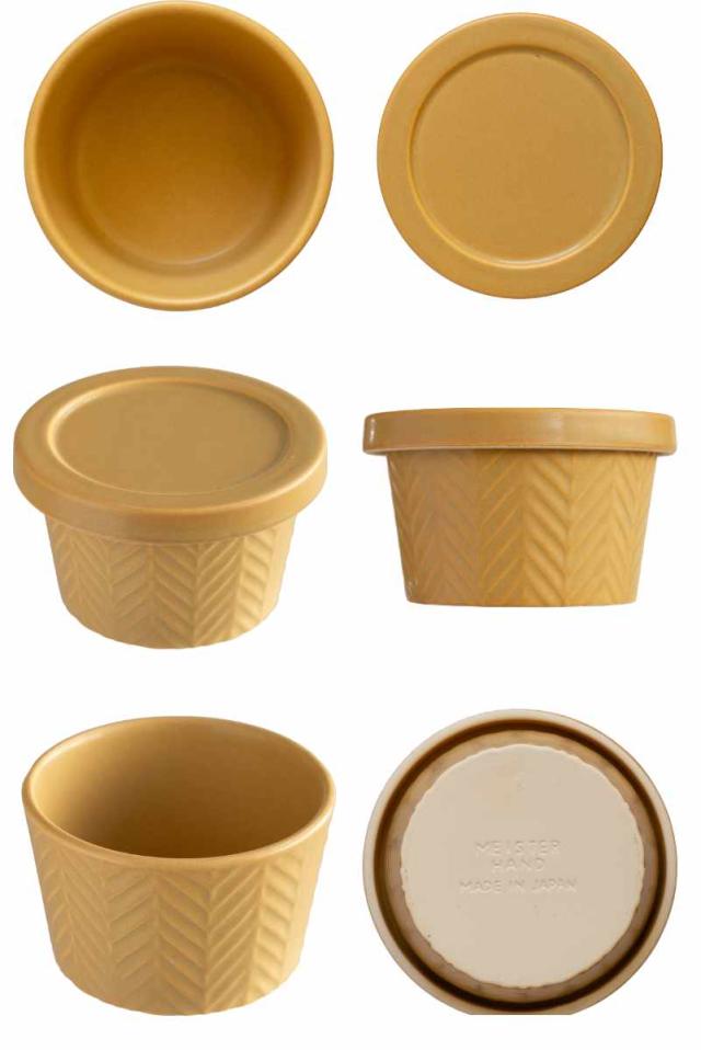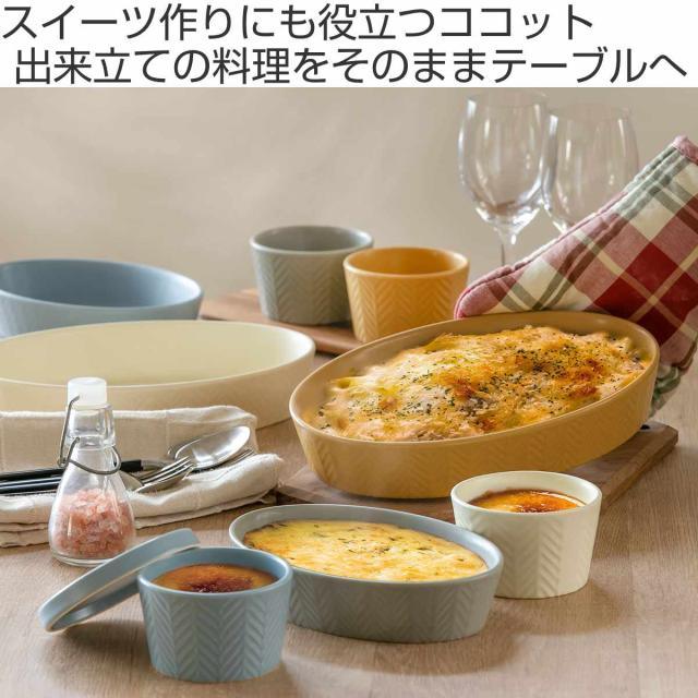 ココット フタ付き 10.5cm ヘリンボーン 陶器 ( 電子レンジ対応 オーブン対応 ガス火対応 小鉢 ラメキン グリル対応 ふた付き 蓋 ヘリンボーン柄 スフレ プリン 茶碗蒸し 副菜 食器 おしゃれ )