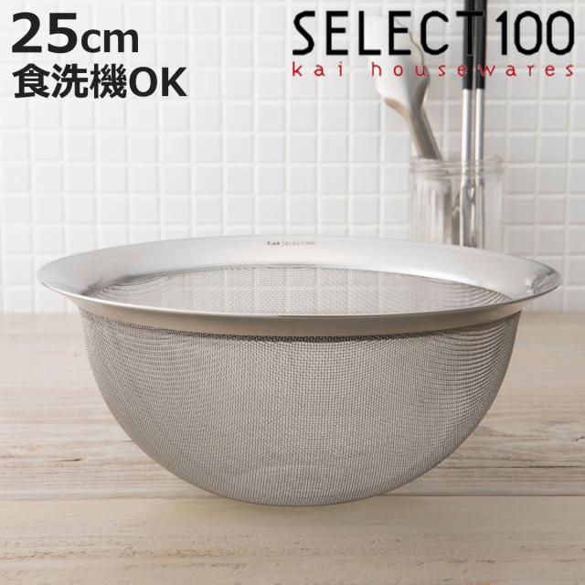 SELECT100 ザル 25cm ステンレス製 ( セレクト100 ざる 水切りザル ストレーナー 食洗機対応 25センチ ステンレスザル 湯切り 水切りざる 粉ふるい 下ごしらえ 調理用品 )