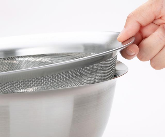 耐久性があり、目詰まりしにくく洗いやすい網目を採用した、ステンレス製のザルです。野菜やパスタの水切り・湯切り・粗熱とりだけでなく、小麦粉のふるいとしても活用できます。